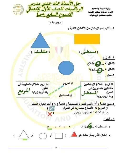 التقييمات الأسبوعية للصف الاول الابتدائى ت٢ الاسبوع السابع ٢٠٢٤ / ٢٠٢٥ 👇👇